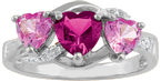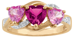 The gold Aurora mother's ring is set with three heart-shaped birthstones of your choosing. This ring features one 6x6mm and two 5x5mm heart shaped gemstones. Each is prong-set. This ring is available with simulated or genuine birthstones. If genuine birthstones are chosen, you may upgrade the eight cubic zirconia accent stones to genuine diamonds for an additional fee. Import.