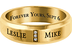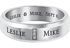 The men's sterling silver Devoted commitment band has a column of three 1mm round created white sapphires and two engraving areas for each person's name. Engrave up to 12 characters per area on the outside of the ring. Select an inside engraving as well. Engravings are always in capital letters. Ring width: 6.75mm. Import.