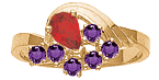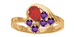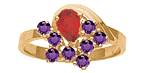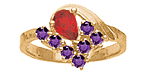 The Heartfelt Memories ring offers personalization for two to eight 2.25mm round gemstones and one pear shaped 6mm x 4mm center stone. Choose simulated or genuine gemstones. This ring measures about 10mm at the widest top center measurement. This mother's ring is available in 10kt or 14kt, white or yellow gold. Made in USA.