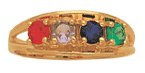 The Family First mother's ring is set with two to six round birthstones of your choice. Gemstone diameter: 3.5mm. Choose simulated or genuine gemstones. This mother's ring style measures about 6.5mm at top center. Available in 10kt or 14kt, white or yellow gold. Made in USA.