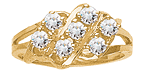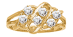 The Centered Reflections mother's ring is set with your choice of two to seven round gemstones. Gemstone diameter: 2.5mm. Choose simulated or genuine gemstones. This ring measures about 9mm at the widest top measurement. Available in 10kt or 14kt, white or yellow gold. Made in USA.