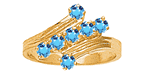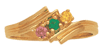 The Touch of Class mother's ring is a traditional style with curved bands of gold and set with your choice of two to seven round gemstones. Gemstone diameter: 2.5mm. Choose simulated or genuine gemstones. The Touch of Class ring measures about 7mm at the widest top center measurement. Available in 10k or 14k, white or yellow gold. Made in USA.