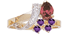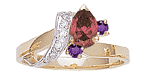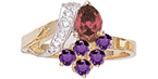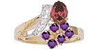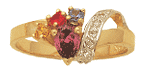 The Twilight Memory ring is set with a pear shaped 6mm x 4mm center stone and one to six 2.5mm round side stones. Choose simulated or genuine gemstones. Available in 10kt or 14kt, white or yellow gold. Made in USA.