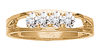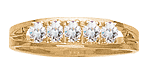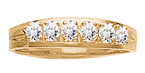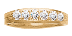 The Childhood Bond mother's ring is set with one to six round birthstones of your choosing. This ring features 2.5mm round gemstones. Each is prong-set. This mother's ring is available with simulated or genuine birthstones. The Childhood Bond ring measures about 4.5mm at the top center. Choose from 10kt or 14k, white or yellow gold. Made in USA.