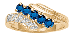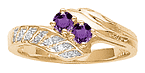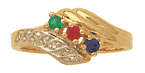 The Path of Fate mother's ring is set with your choice of two to seven round gemstones. Gemstone diameter: 2.5mm. Choose simulated or genuine gemstones. This ring measures about 9.5mm at the widest top measurement. Available in 10kt or 14kt, white or yellow gold. Made in USA.