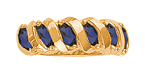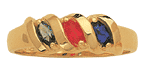 The Lifetime of Magic ring offers personalization for two to six marquise cut birthstones. Each birthstone is 5mm x 2.5mm. Choose simulated or genuine gemstones. This mother's ring style measures about 6.5mm at the top center. Choose 10kt or 14kt, white or yellow gold. Made in USA.